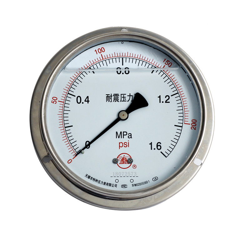 可檢測腐蝕性較強及高溫介質的壓力及真空度,壓力表指示穩(wěn)定清晰。不銹鋼壓力表廣泛應用于石油、化工、冶金、食品、醫(yī)藥等工業(yè)部門壓力測量。
